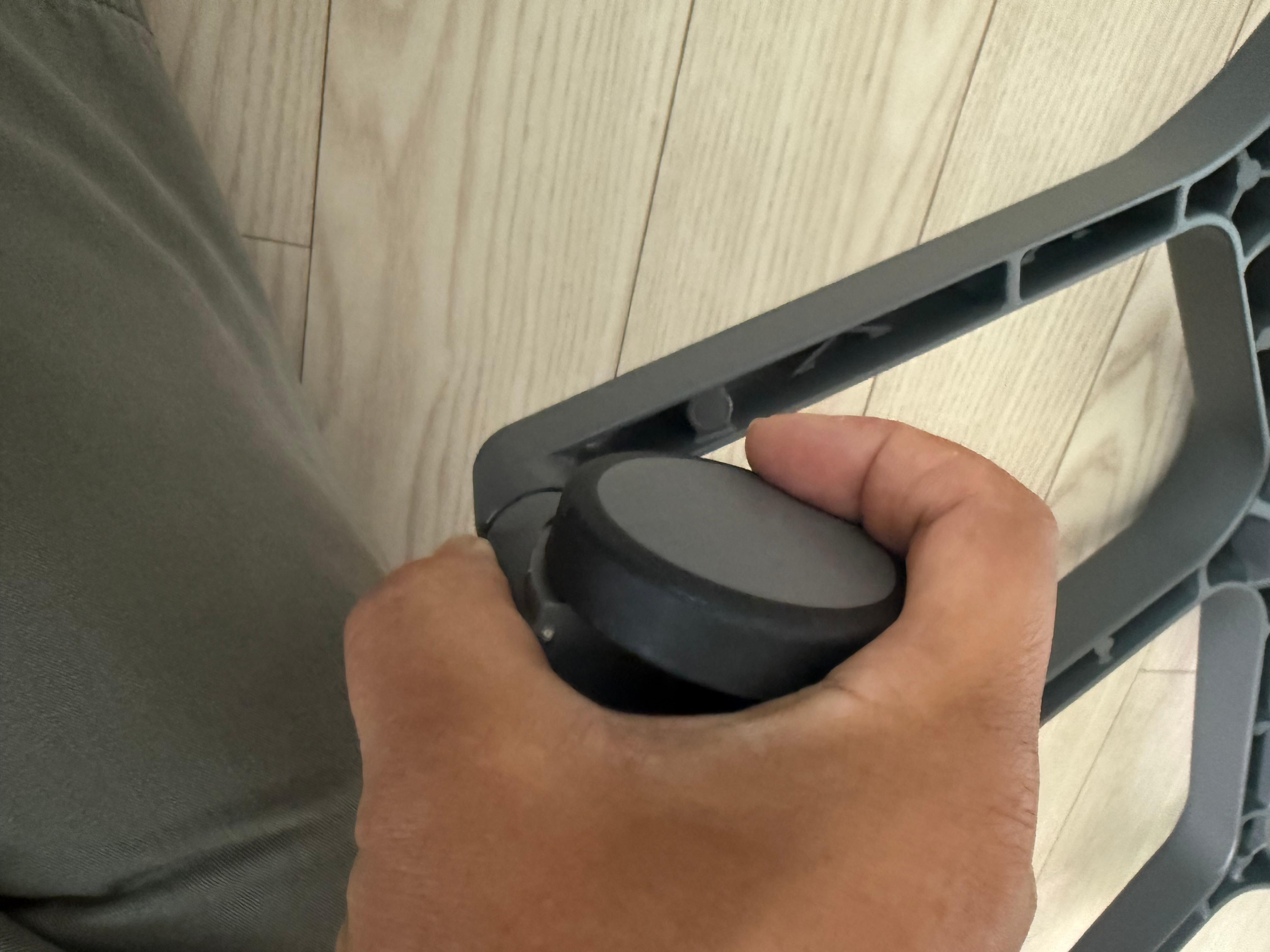 마지막으로 목 헤드레스트 부분을 조립합니다. 남아있는 다른 모양의 나사 한 개가 여기에 쓰입니다.